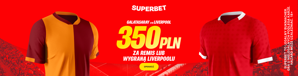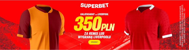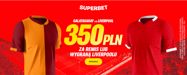 Postaw pierwszy kupon singiel na remis lub wygraną Liverpoolu (zakład – X2) w meczu z Galatasaray, a jeśli Twój kupon okaże się wygrany, otrzymasz ekstra bonus 350 PLN.