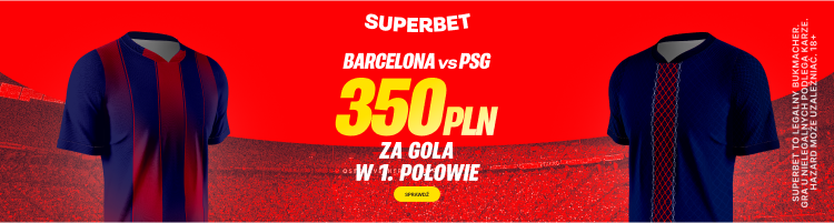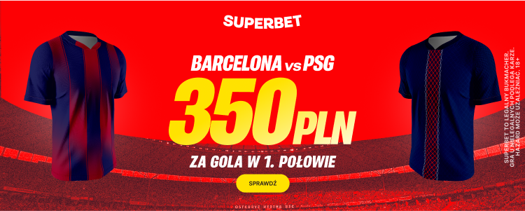 Postaw pierwszy kupon singiel na gola w 1. połowie meczu Barcelona – PSG, a jeśli Twój kupon okaże się wygrany, otrzymasz ekstra bonus 350 PLN.