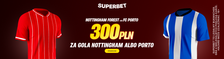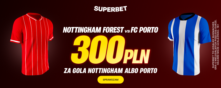 Walka o półfinał Ligi Europy wchodzi w decydującą fazę! Nottingham Forest podejmuje na własnym terenie FC Porto. Po remisie w pierwszym meczu, sprawa awansu jest całkowicie otwarta. Z tej okazji Superbet przygotował dla nowych graczy promocję, w której wystarczy tylko jedna bramka wybranej drużyny, by zgarnąć bonus!