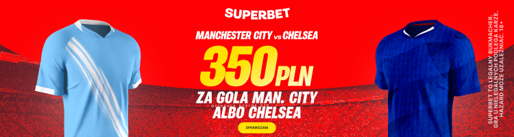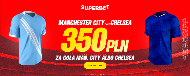 To będzie prawdziwe starcie tytanów! Mistrzowie Anglii podejmują na własnym boisku ekipę Chelsea. Z tej okazji Superbet przygotował dla nowych graczy promocję, obok której nie da się przejść obojętnie. Możesz zgarnąć aż 350 PLN dodatkowego bonusu, jeśli wybrana przez Ciebie drużyna strzeli choćby jednego gola!