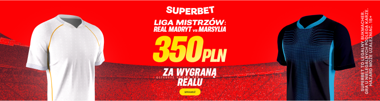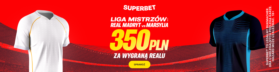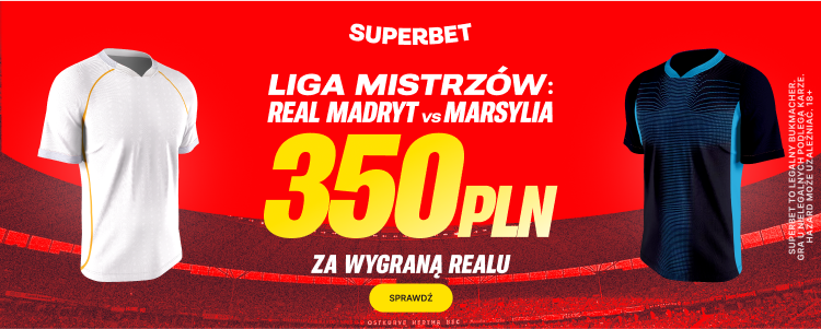 Postaw pierwszy kupon singiel na zwycięstwo Realu Madryt w meczu z Marsylią, a jeśli Twój kupon okaże się wygrany, otrzymasz ekstra bonus 350 PLN.