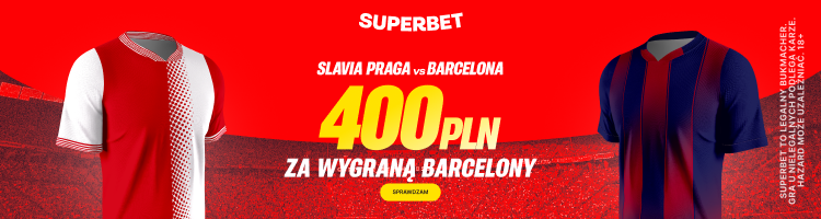 Najlepsza piłkarska liga świata powraca! FC Barcelona na własnym stadionie podejmuje czeską Slavię Praga. Z tej okazji Superbet przygotował dla nowych graczy wyjątkową ofertę. Możesz zgarnąć aż 400 PLN dodatkowego bonusu za wygraną ekipy Roberta Lewandowskiego!