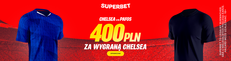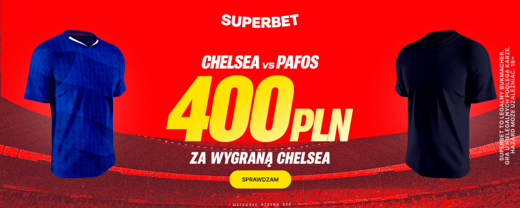 Przed nami europejskie starcie na Stamford Bridge! Londyńska Chelsea podejmuje rewelację rozgrywek – cypryjskie Pafos FC. Z tej okazji Superbet przygotował dla nowych graczy wyjątkową ofertę. Możesz zgarnąć aż 400 PLN dodatkowego bonusu za wygraną „The Blues”!