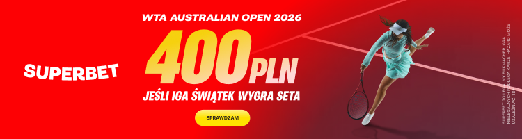 - Jeśli Iga wygra chociaż jedną partię (np. mecz skończy się wynikiem 1:2 lub 2:0 dla Igi), otrzymasz od Superbet DODATKOWY BONUS 400 PLN!