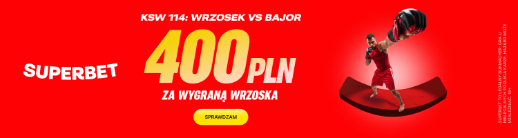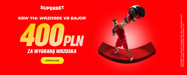 Przed nami gala KSW 114 i starcie gigantów w wadze ciężkiej! Arkadiusz Wrzosek, król nokautów, zmierzy się z niezwykle doświadczonym Szymonem Bajorem. Z tej okazji Superbet przygotował dla nowych graczy potężną ofertę. Możesz zgarnąć aż 400 PLN dodatkowego bonusu za wygraną popularnego „Wrzosa”!