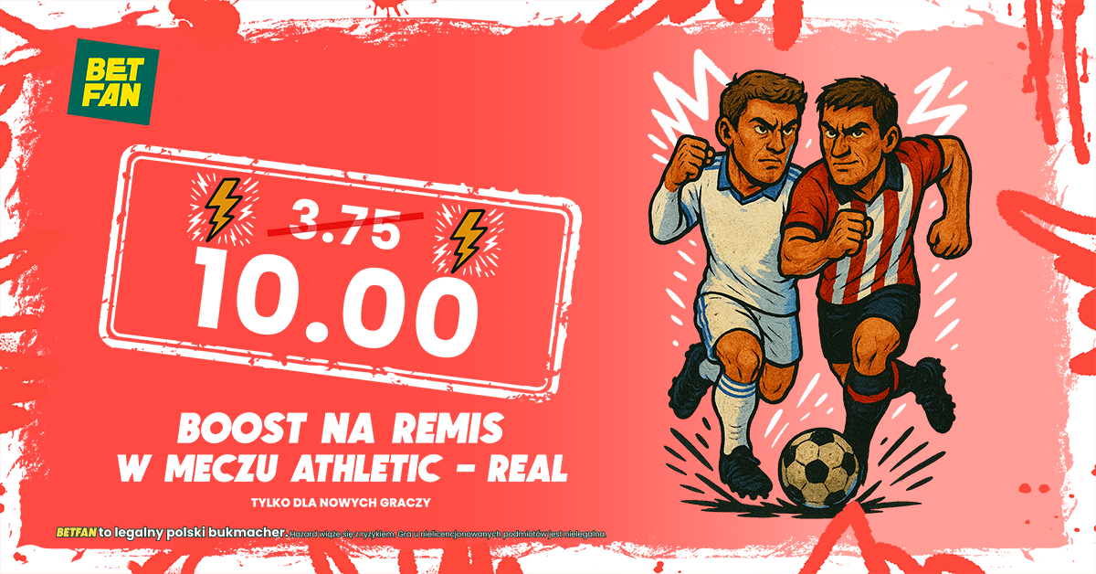 Nie przegap tej szansy! Remis w meczu Athletic – Real Madryt to wynik wcale nie niemożliwy, a kurs 10.0 to gwarancja emocji i dużej wygranej przy minimalnym ryzyku!