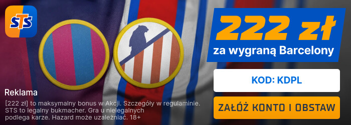 STS przygotował wyjątkową promocję, która daje dodatkowe 222 PLN za wytypowanie zwycięzcy hitowego meczu: FC Barcelona – Atlético Madryt!