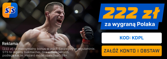 STS przygotował wyjątkową promocję, która daje dodatkowe 222 PLN za wytypowanie zwycięzcy dowolnej walki podczas gali UFC 323! Niezależnie od tego, czy stawiasz na Błachowicza, czy na walkę wieczoru – bonus jest Twój!