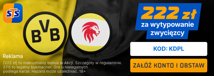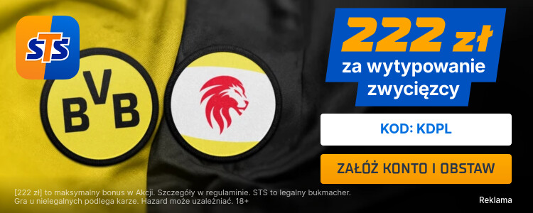 STS oferuje jeden z najatrakcyjniejszych pakietów powitalnych, idealny na hit Bundesligi! Standardowy pakiet powitalny to 660 PLN, a dzięki limitowanej Akcji Specjalnej możesz zgarnąć dodatkowe 222 PLN! Wykorzystaj tę okazję na starcie gigantów: Borussia Dortmund – Bayer Leverkusen!