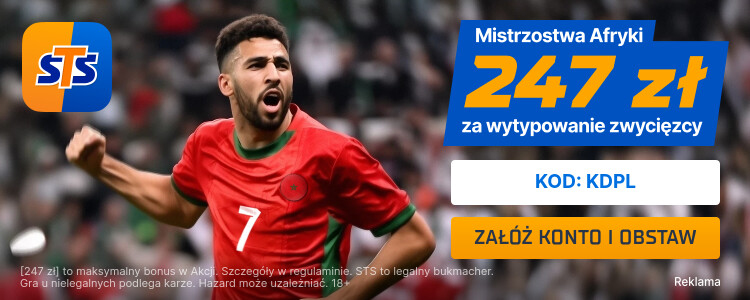 Nowy rok zaczynamy z wielkim przytupem! Afrykańskie boiska zapłoną podczas fazy play-off Pucharu Narodów Afryki, a STS przygotował z tej okazji jeszcze wyższy bonus dla nowych graczy. Standardowy pakiet powitalny to 660 PLN, ale z naszym kodem promocyjnym czeka na Ciebie aż 247 PLN za wytypowanie zwycięzcy meczu!