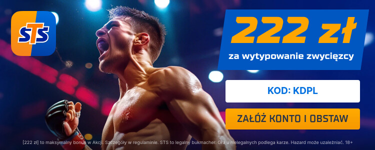 STS przygotował wyjątkową promocję, która daje dodatkowe 222 PLN za wytypowanie zwycięzcy dowolnej walki podczas gali UFC Fight Night!