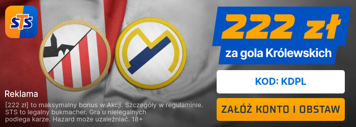 STS przygotował wyjątkową promocję, która daje dodatkowe 222 PLN za wytypowanie drużyny, która strzeli gola w hicie La Liga: Athletic Bilbao – Real Madryt!