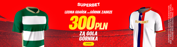 Cześć, fani polskiej piłki! Mamy dla Was fantastyczną promocję na mecz Pucharu Polski! Superbet ogłosił specjalną ofertę, w której możecie odebrać AŻ 300 PLN EKSTRA za to, że Górnik Zabrze strzeli gola w starciu z Lechią Gdańsk!