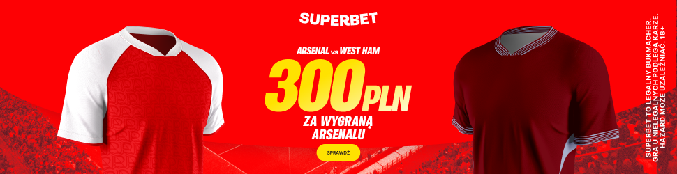 Hej! Szykują się wielkie emocje w Premier League! Mamy świetną okazję, by połączyć kibicowanie z dużą wygraną – Superbet odpalił promocję, w której możecie zgarnąć AŻ 300 PLN EKSTRA za zwycięstwo Arsenalu nad West Hamem!