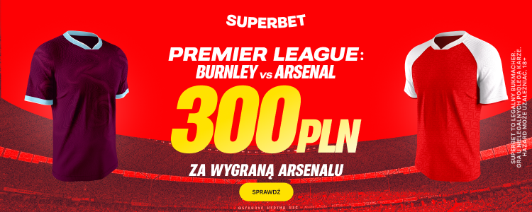Hej, fani Premier League i Kanonierów! Mamy dla Was fantastyczną promocję! Superbet ogłosił specjalną ofertę, w której możecie zgarnąć AŻ 300 PLN EKSTRA za to, że Arsenal zwycięży w meczu ligowym przeciwko Burnley. To jest idealna okazja, by bezpiecznie zacząć z dużym bonusem!