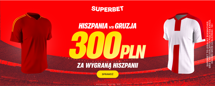 Hej! Superbet nie zwalnia tempa i serwuje nam kolejny hit! Tym razem możecie zgarnąć AŻ 300 PLN EKSTRA za postawienie na zwycięstwo Hiszpanii w meczu z Gruzją. To idealny moment, by dołączyć!