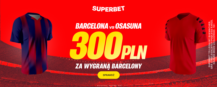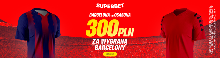 Cześć, fani La Liga i Culés! Mamy dla Was fantastyczną promocję, która podkręci emocje przy oglądaniu Barcelony! Superbet ogłosił specjalną ofertę, w której możecie odebrać AŻ 300 PLN EKSTRA za to, że Barcelona zwycięży w meczu ligowym przeciwko Osasunie!