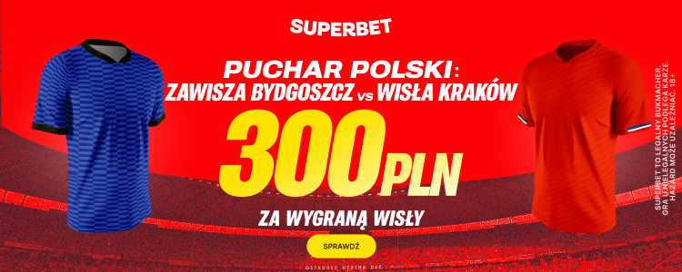 ⚪🔴 300 PLN EKSTRA za WYGRANĄ WISŁY KRAKÓW! Mega Bonus Superbet na Puchar Polski!