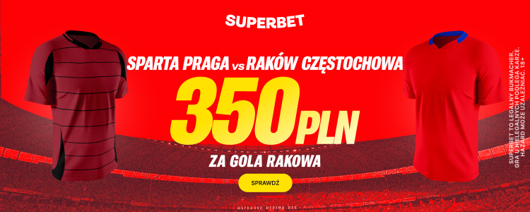350 PLN EKSTRA za GOLA Rakowa w Pradze! Mega Bonus Superbet na Ligę Konferencji!