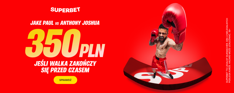 Cześć, fani boksu! Przed nami elektryzujące starcie dwóch wielkich nazwisk: Jake Paul zmierzy się z Anthonym Joshuą! Superbet ogłosił specjalną ofertę: możecie odebrać AŻ 350 PLN EKSTRA za to, że walka zakończy się przed czasem (tzn. nie potrwa pełnego dystansu)!
