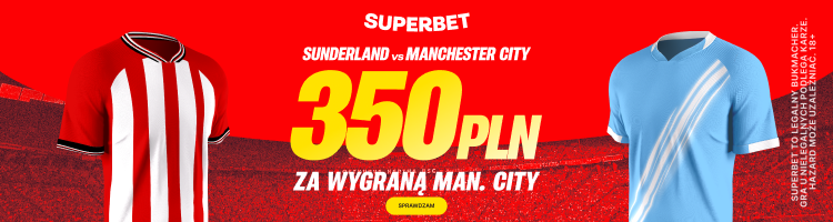 Cześć, fani Premier League! Przed nami starcie, w którym Manchester City zmierzy się z Sunderlandem. Ekipa „Obywateli” to maszyna do wygrywania, a dzięki Superbet możesz na ich zwycięstwie zarobić znacznie więcej niż zwykle! Bukmacher oferuje nowym graczom AŻ 350 PLN EKSTRA za wygraną drużyny Pepa Guardioli!