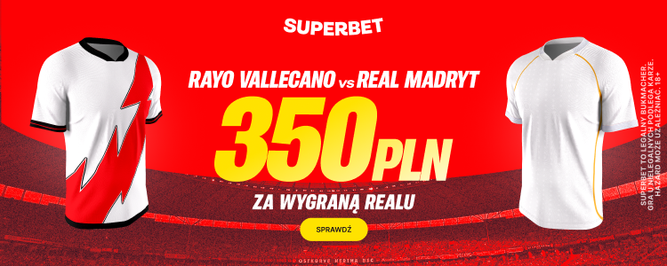 Cześć, fani La Liga i Królewskich! Mamy dla Was fantastyczną promocję, która podkręci emocje przy derbowym starciu! Superbet ogłosił specjalną ofertę, w której możecie odebrać AŻ 350 PLN EKSTRA za to, że Real Madryt zwycięży w meczu ligowym z Rayo Vallecano.