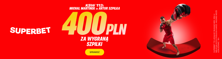 Cześć, fani MMA! Przed nami wielkie emocje na gali KSW 113! W jednym z najciekawszych starć Artur Szpilka skrzyżuje rękawice z Michalem Martinkiem. Z tej okazji Superbet przygotował potężne uderzenie: możecie odebrać AŻ 400 PLN EKSTRA za zwycięstwo popularnego „Szpili”!